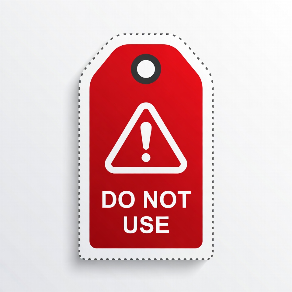 caution sign, clipart, danger label, do not use, exclamation triangle, hanging tag, illustration, isolated background, perforated edge, price tag, red tag, safety warning, white background, warning tag