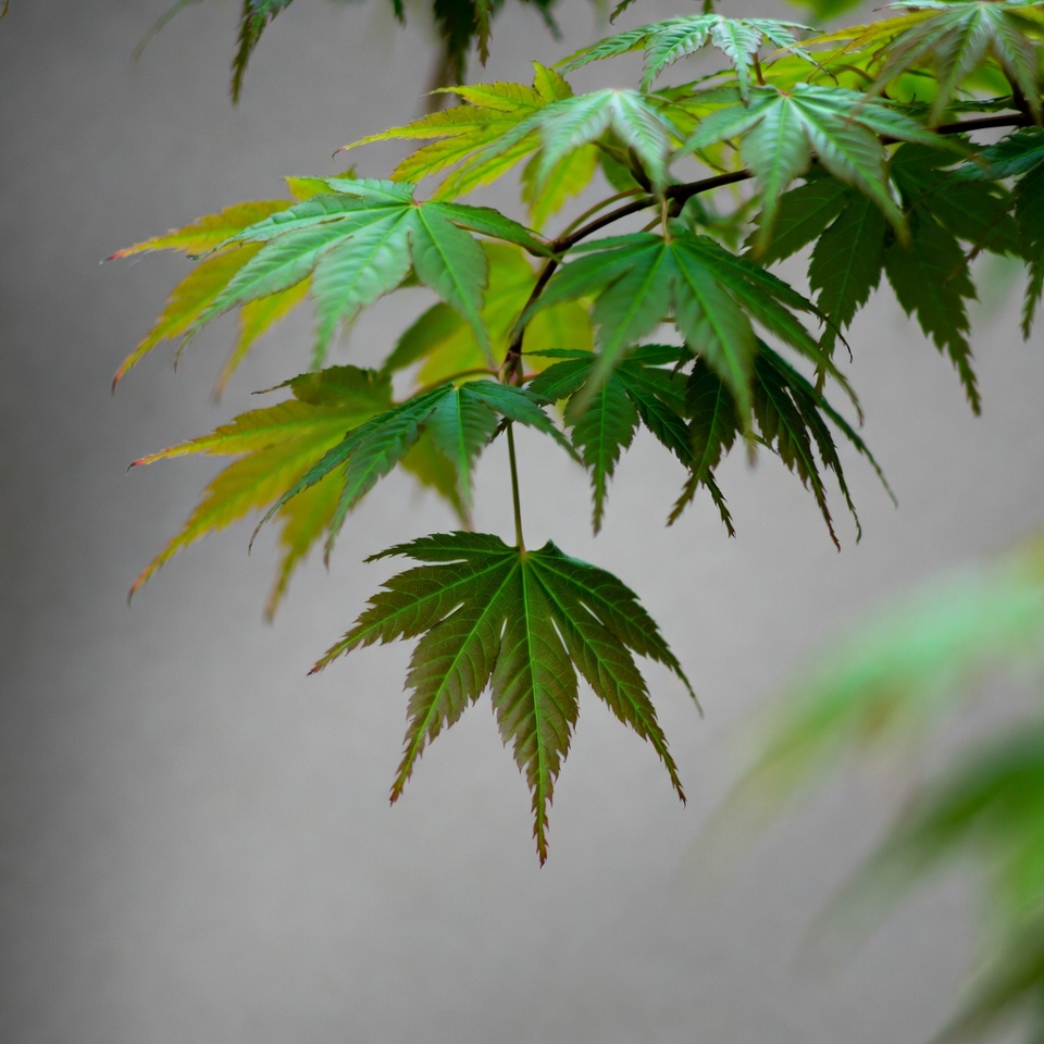 Japanese Maple Leaves on Gray Background