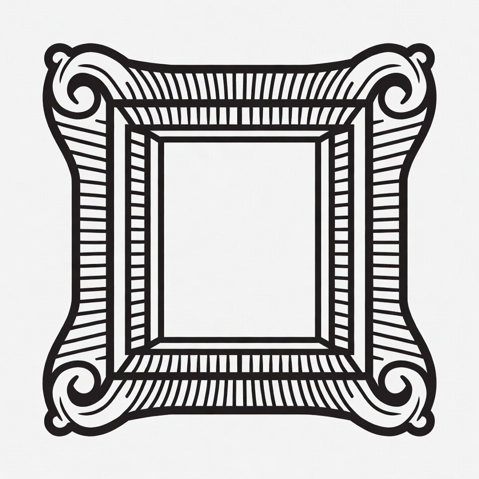 art frame, black frame, border design, clipart, decorative frame, empty frame, frame outline, graphic design, illustration, isolated background, line art, ornate frame, scrollwork, square frame, vector graphic, vintage frame, white background, picture frame