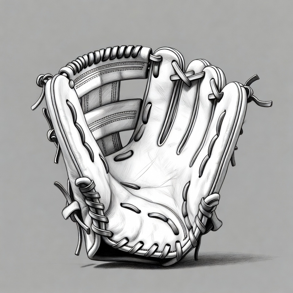 baseball gear, baseball mitt, catchers mitt, drawing, fielders glove, illustration, isolated background, lacing, leather glove, pencil sketch, sketch, sports equipment, stitching, webbing, white glove, baseball glove