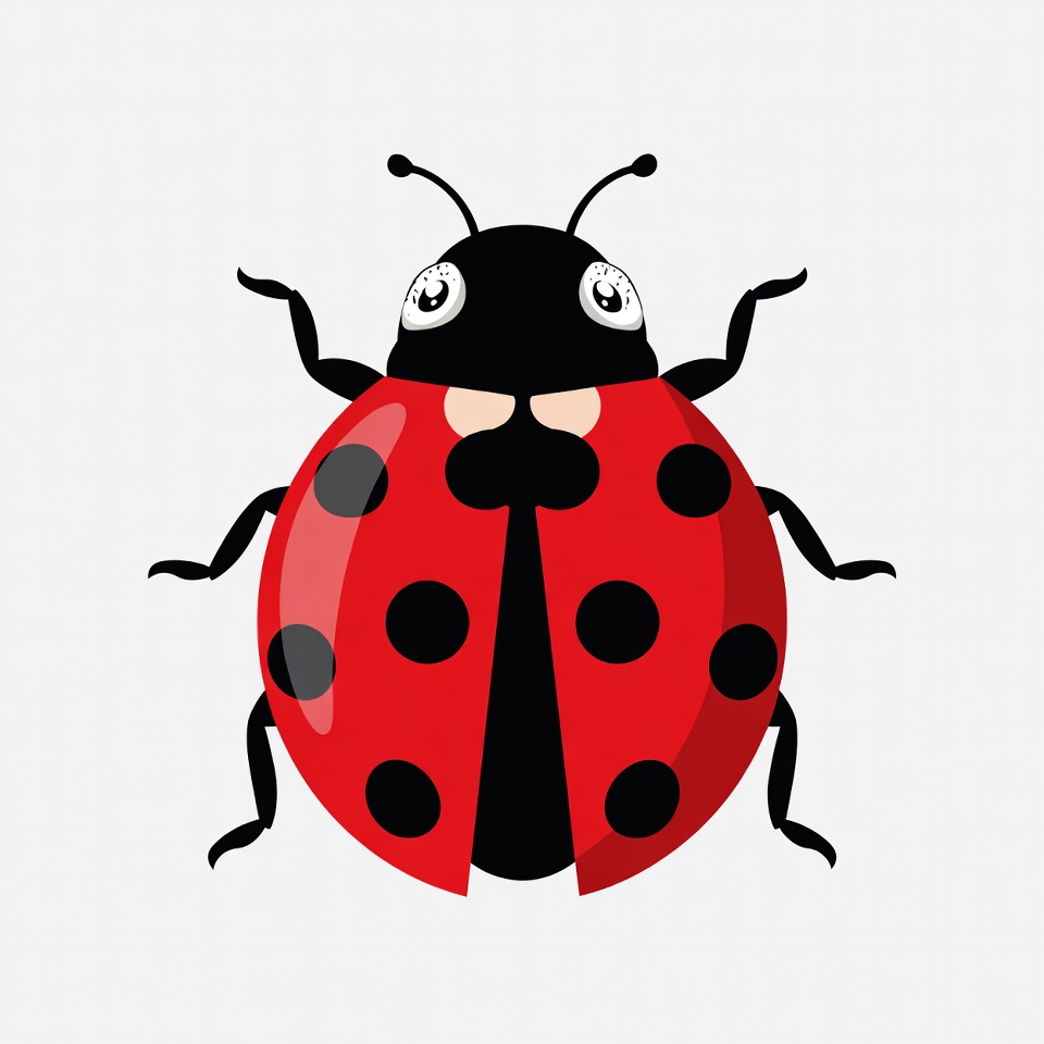 adorable insect, antennae, beetle, big eyes, black spots, cartoon ladybug, children's illustration, clipart, cute ladybug, fun bug, graphic design, illustration, insect, isolated background, kawaii, legs, red ladybug, shiny wings, vector art, ladybug