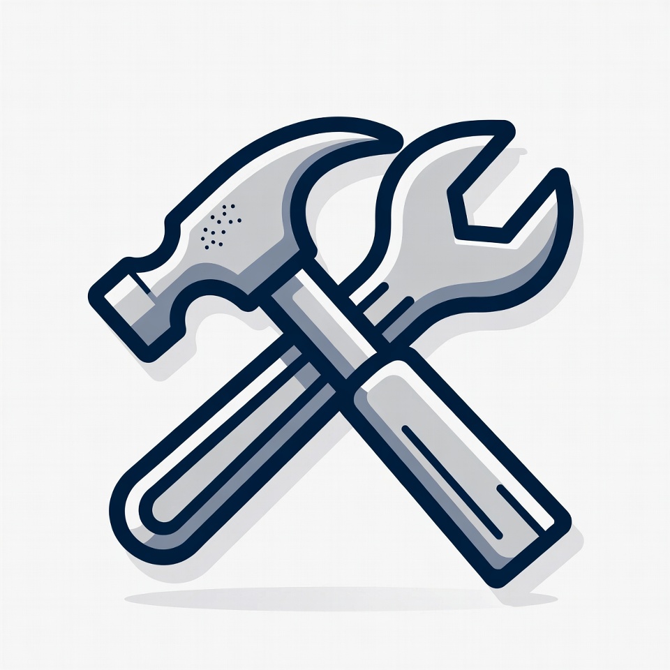 DIY tools, clipart, construction tools, crossed tools, handyman tools, hardware, icon, illustration, isolated background, line art, repair tools, toolbox, tools, vector art, wrench, hammer