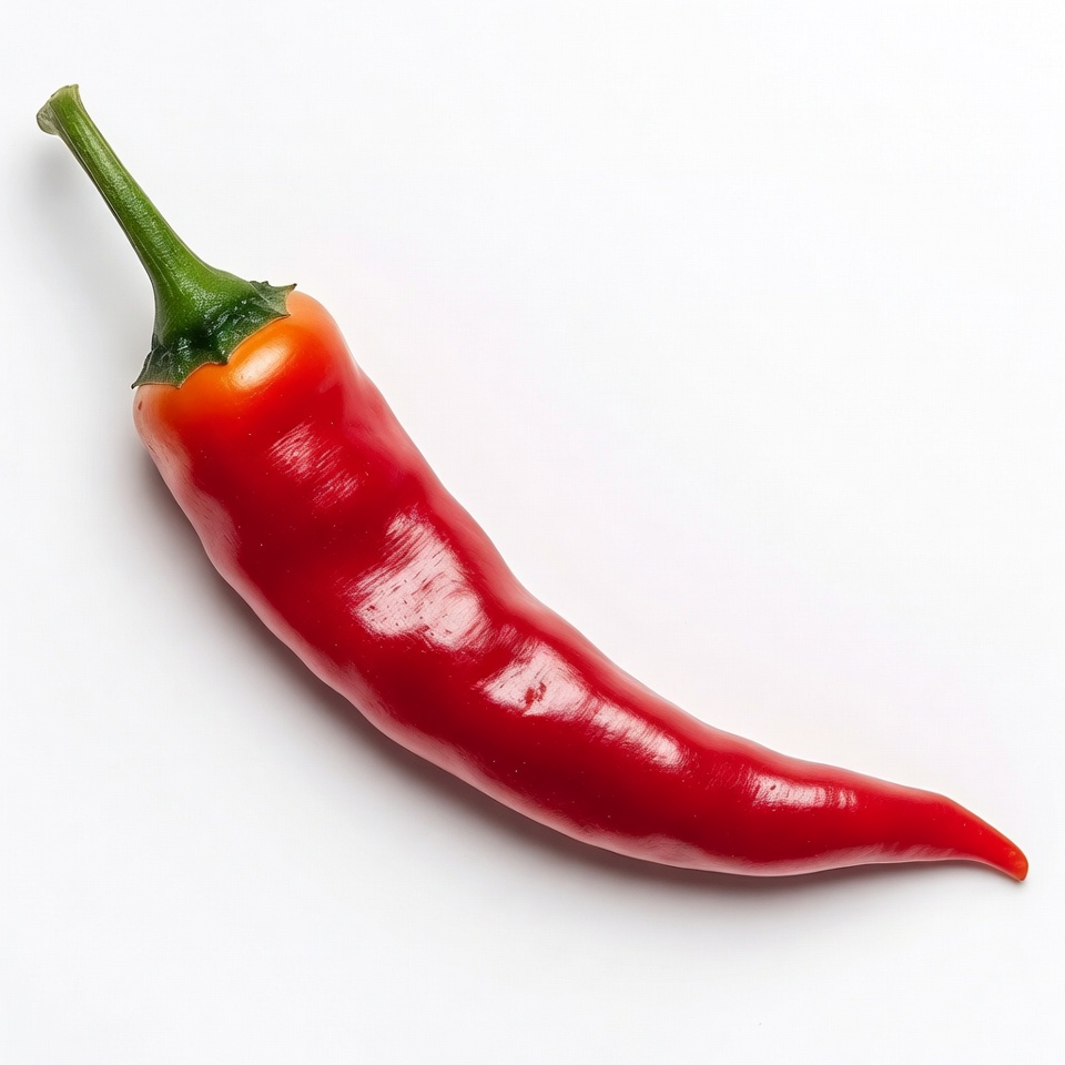 cayenne pepper, chili pepper, fresh vegetable, glossy pepper, green stem, hot chili, isolated background, red pepper, spicy pepper, tapered pepper, white background, red chili pepper