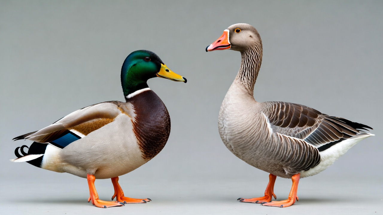 Mallard Duck and Goose Facing Each Other