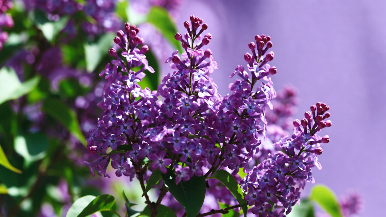 blooming lilac, buds, floral closeup, flower cluster, garden, green leaves, lavender flowers, lilac blossoms, nature, petals, plant, purple background, purple flowers, spring flowers, lilac flowers