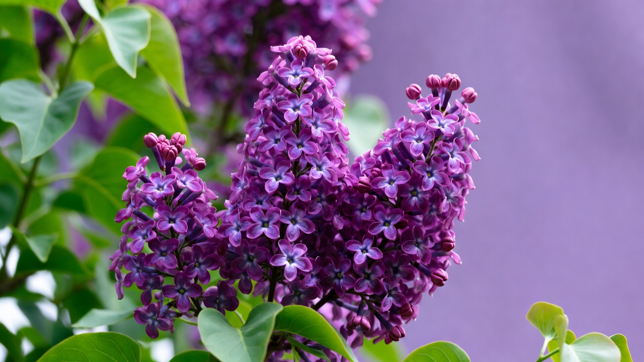 blooms, branches, close-up, floral, flower cluster, garden plant, green leaves, isolated background, lavender color, lilac blossoms, nature, petals, purple flowers, spring flowers, lilac