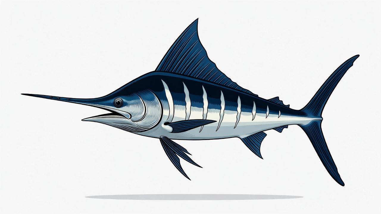 billfish, blue fins, clipart, fish illustration, isolated background, long bill, marine animal, marlin fish, ocean fish, sea creature, striped body, striped fish, swimming fish, swordfish, vector art, blue marlin