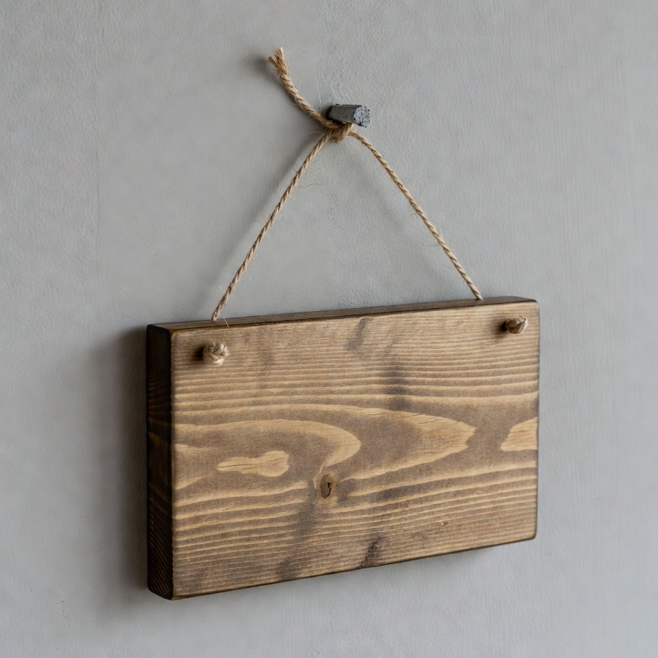 blank sign, blank wood, craft sign, decor sign, gray wall, hanging sign, isolated background, rope, rustic sign, sign board, twine, wall hanging, wood plank, wooden board, wooden sign