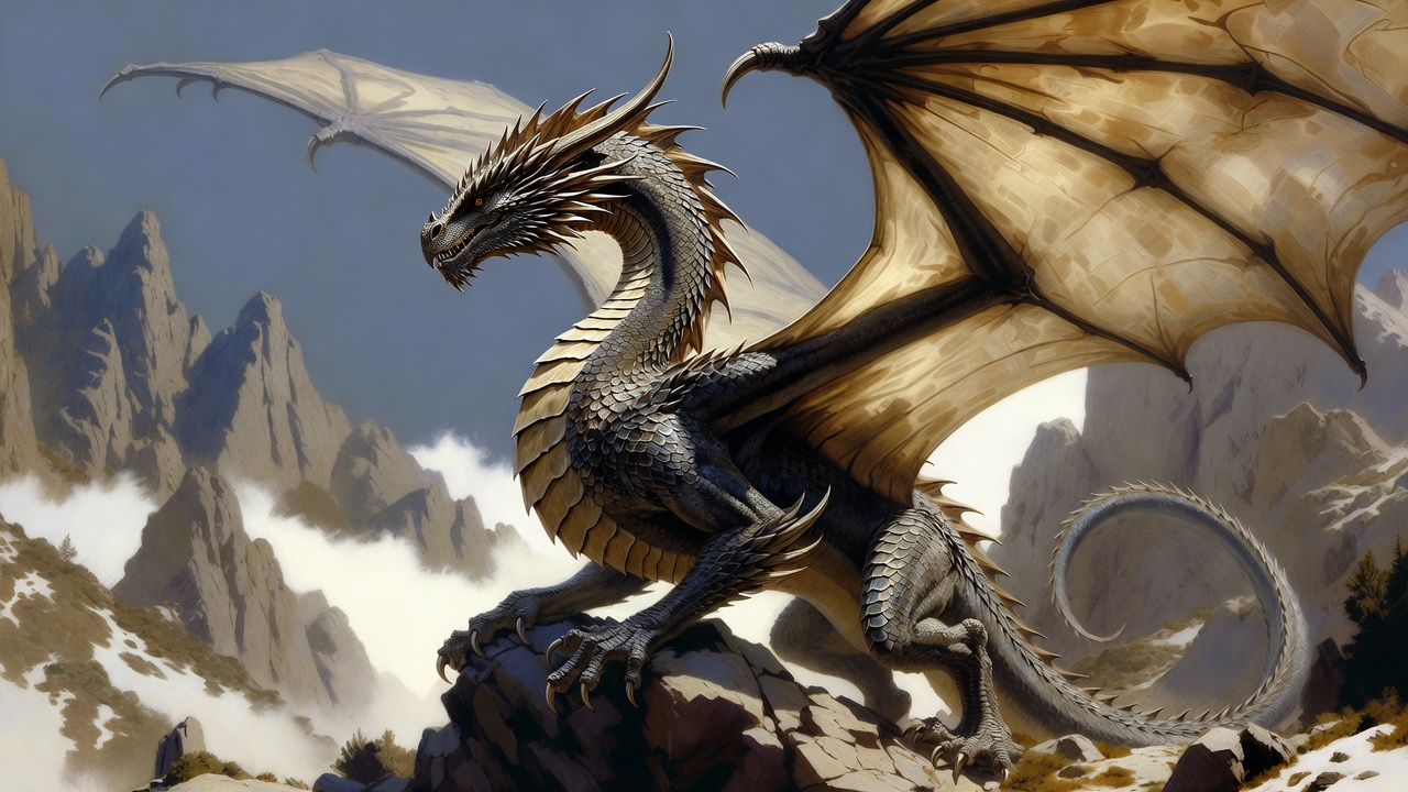 Majestic Dragon on Snowy Mountain