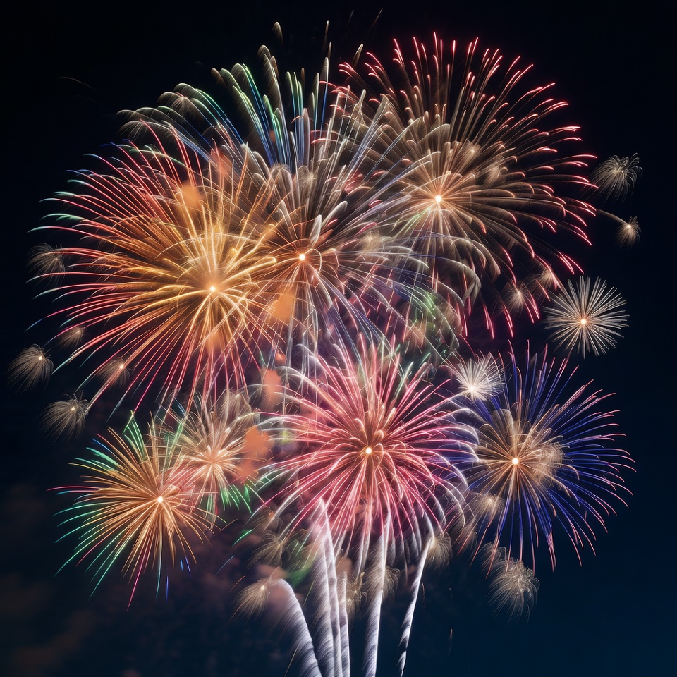 blue fireworks, bursts, celebration, colorful fireworks, dark background, display, exploding fireworks, festival, green fireworks, holiday fireworks, light trails, night sky, orange fireworks, pyrotechnics, red fireworks, show, sparks, vibrant colors, yellow fireworks, fireworks