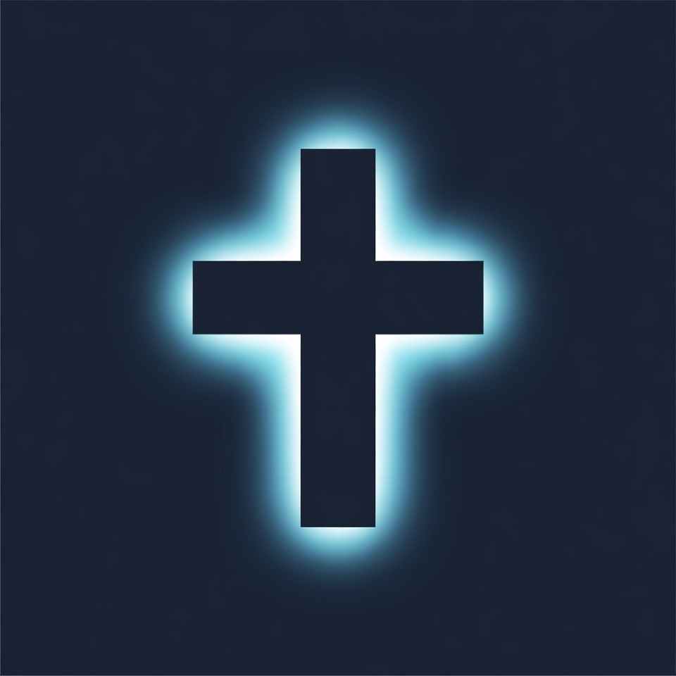 Christian cross, Christianity, black cross, blue glow, dark background, faith symbol, glowing cross, illustration, isolated background, neon cross, religious symbol, simple design, vector graphic, cross
