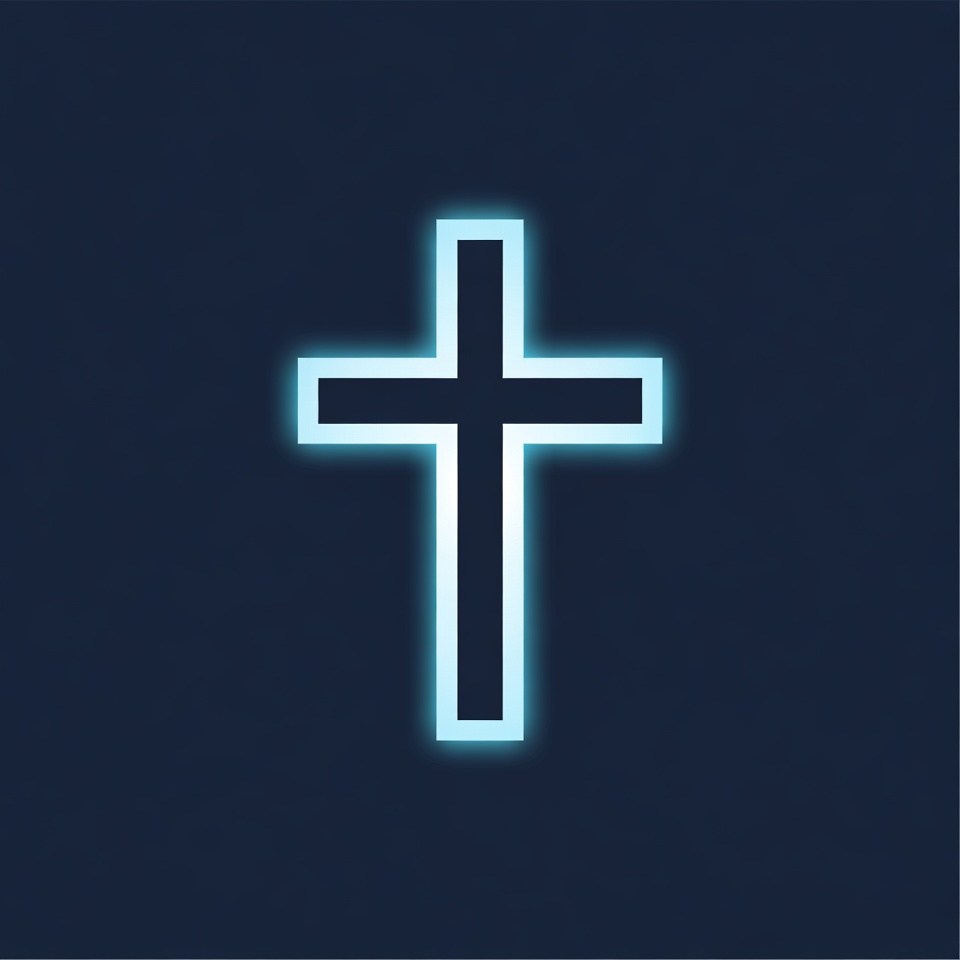 Christian cross, Christianity, blue glow, dark background, faith, glowing cross, graphic, holy symbol, illustration, isolated background, navy blue, neon cross, religion, symbol, cross