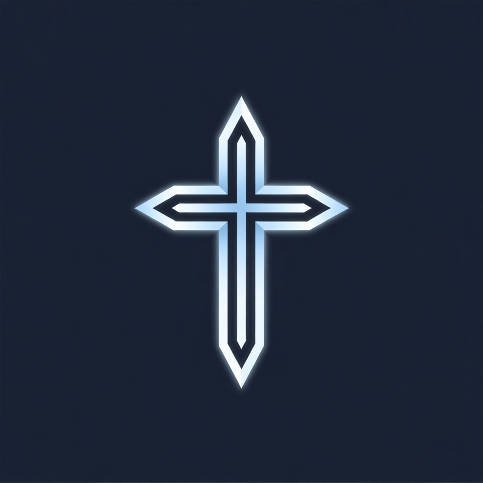 Glowing White Cross on Navy Background