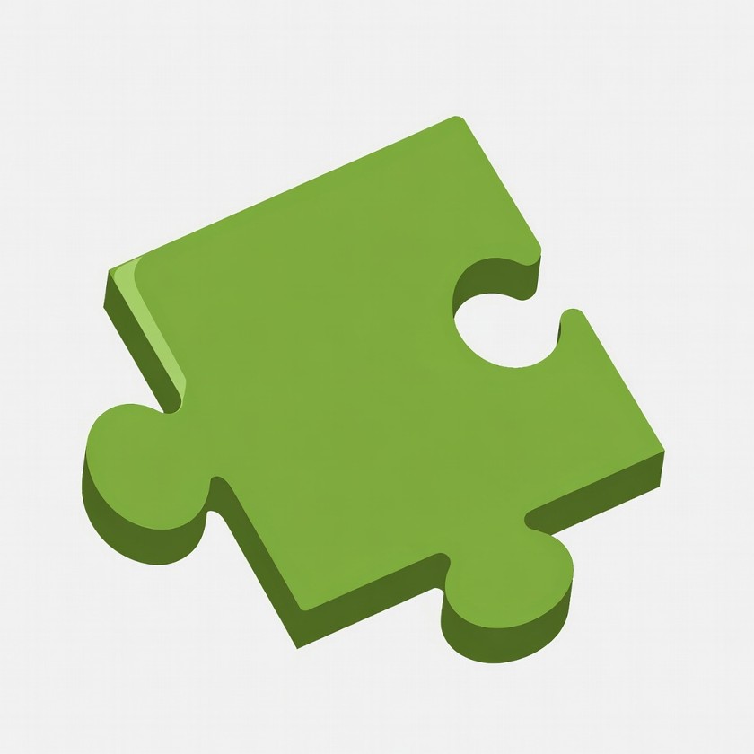 3D puzzle, clipart, game piece, green, green puzzle, illustration, interlocking, isolated background, jigsaw, puzzle, puzzle piece, single piece, jigsaw puzzle