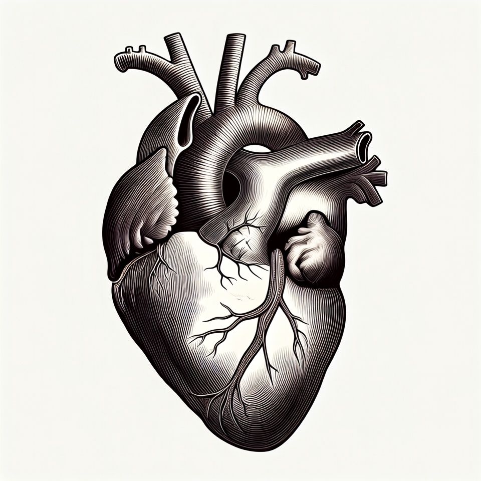 anatomical heart, aorta, arteries, atria, cardiovascular, clipart, detailed heart, heart anatomy, heart illustration, isolated background, line art, medical illustration, organ, realistic drawing, veins, ventricles, human heart