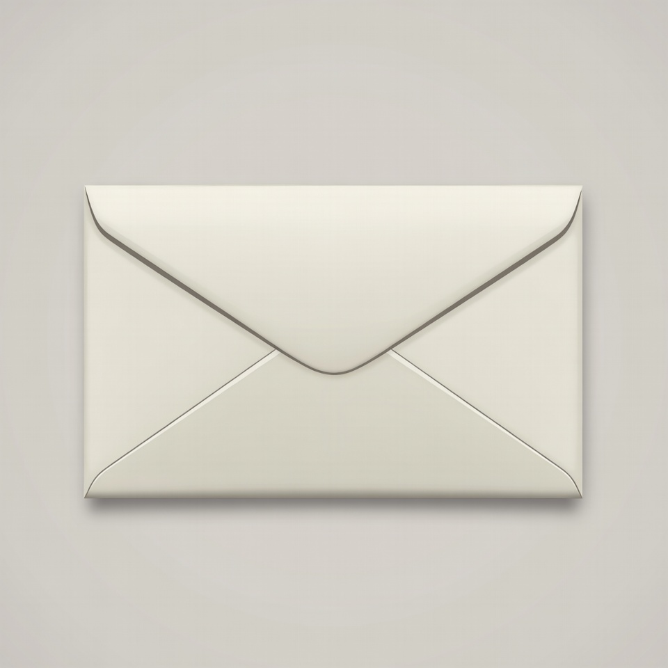 A plain white envelope is centered against a light gray background. The envelope is viewed from the back, showing its sealed flap. It has a smooth, clean appearance with subtle shading.
