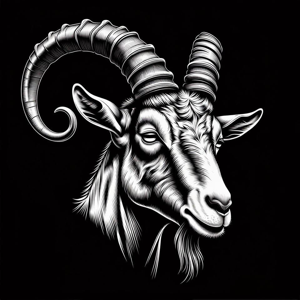 Black and white goat head illustration