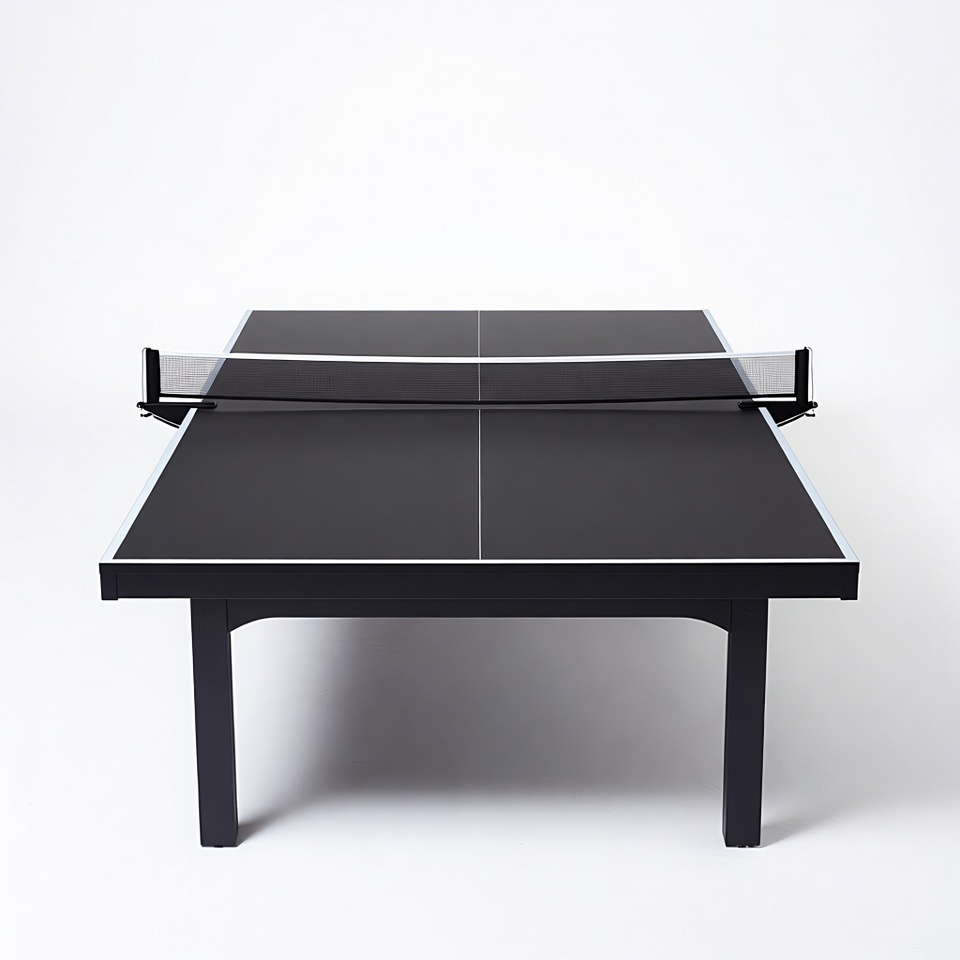 black table, competition table, game table, glossy surface, indoor game, isolated background, ping pong net, racket sport, sports equipment, table legs, table tennis, white net, ping pong table