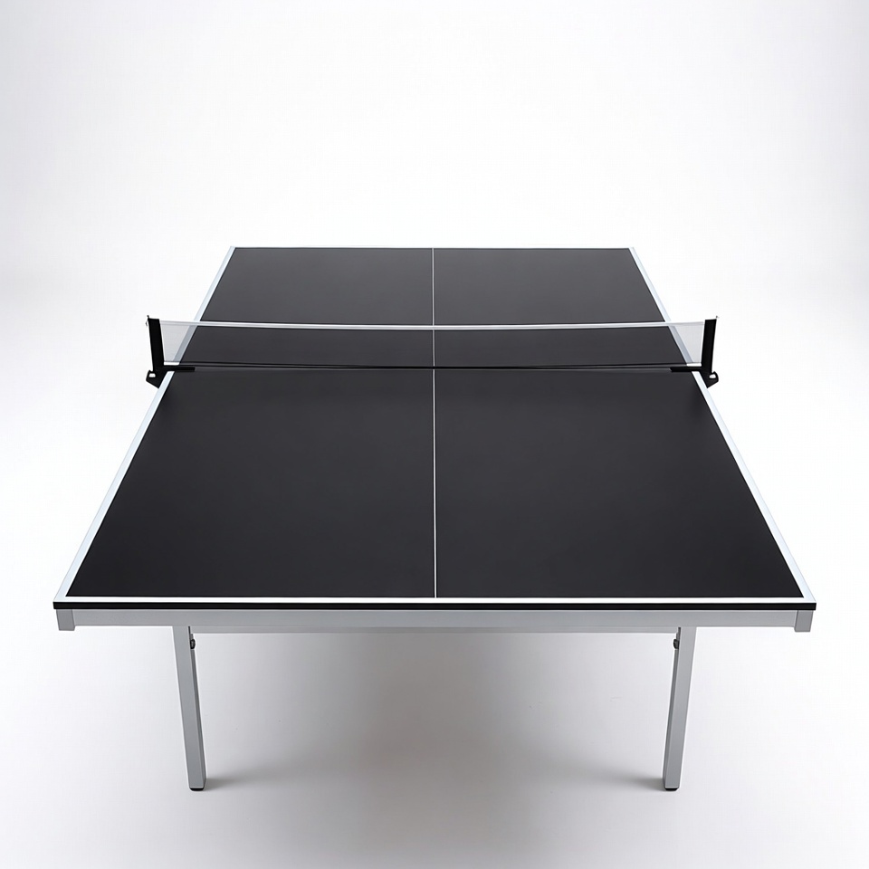 3D render, black table, competition table, game table, glossy surface, indoor sport, isolated background, net divider, rectangular table, silver legs, sports equipment, table tennis, white background, white net, ping pong table