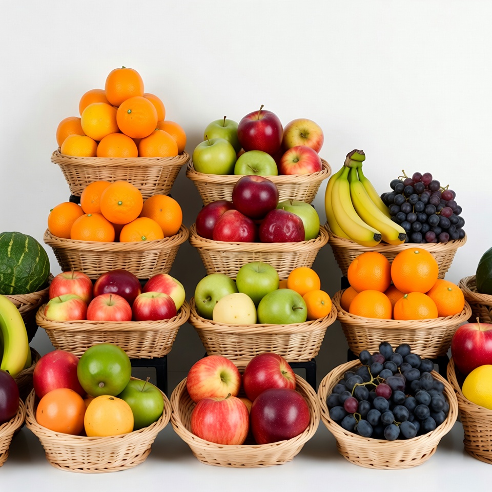 Fresh Fruits in Wicker Baskets