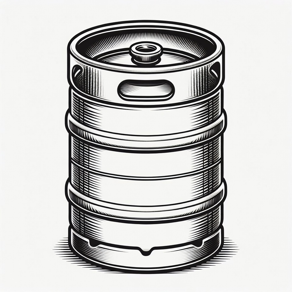 barrel, beer barrel, black and white, brewery, clipart, draft beer, engraving style, illustration, industrial keg, isolated background, keg, line art, metal keg, vector art, beer keg