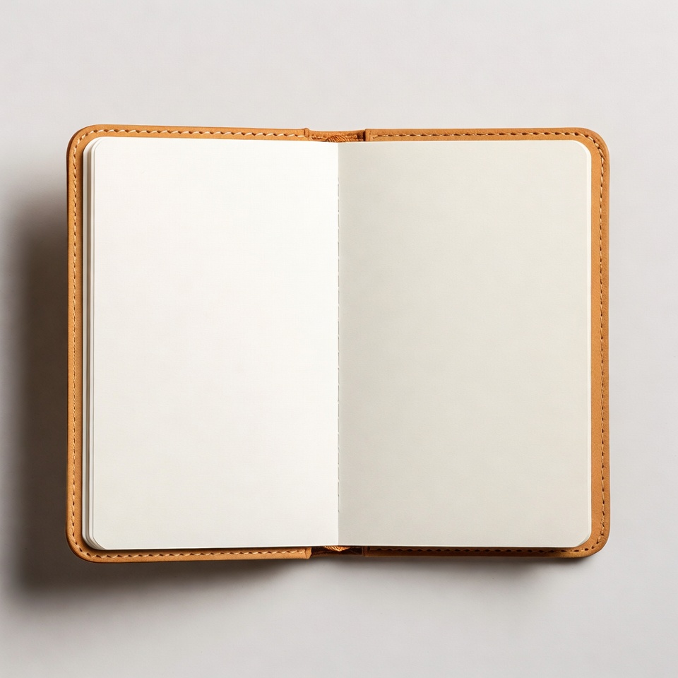 blank journal, blank pages, brown leather, empty notebook, hardcover notebook, isolated background, journal, leather cover, notebook, open notebook, stationery, top view, white pages, writing pad, leather notebook
