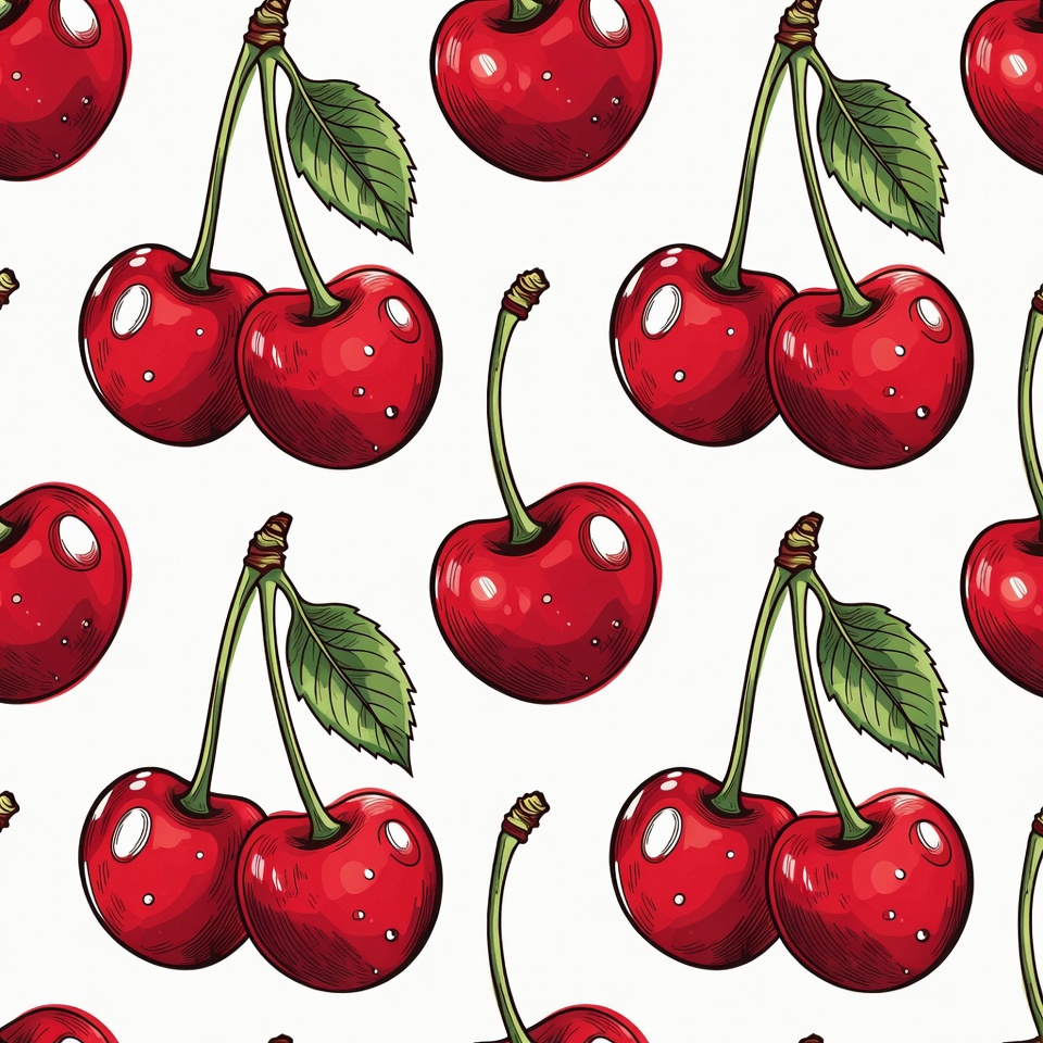 berry pattern, cherry clusters, cherry illustration, cherry pattern, cherry stems, cherry wallpaper, clipart, fresh cherries, fruit illustration, fruit pattern, green leaves, hand drawn cherries, red cherries, red fruit, ripe cherries, seamless pattern, summer fruit, vector cherries, white background, cherries
