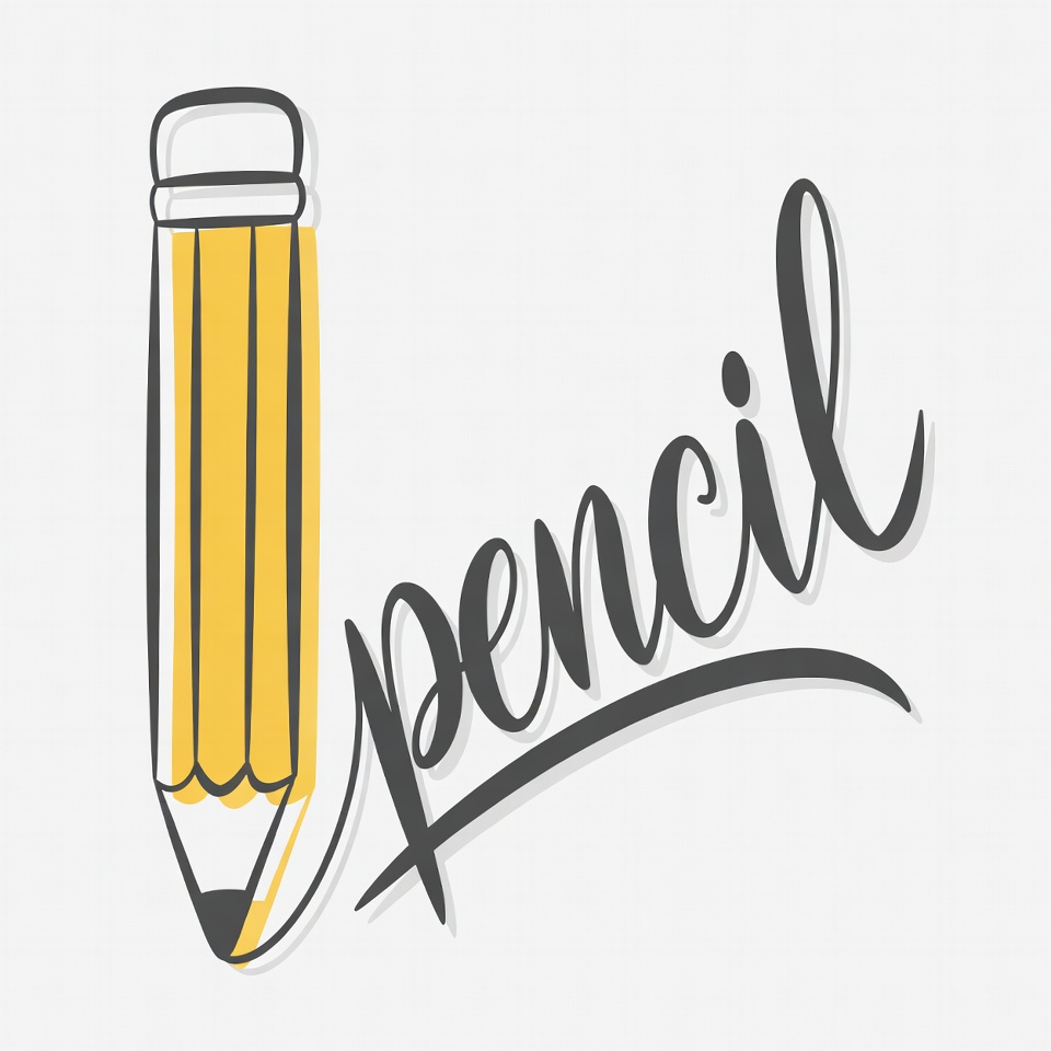 clipart, cursive text, doodle, drawing, graphic, handwriting, illustration, isolated background, office supply, school supplies, simple illustration, vector art, writing tool, yellow pencil, pencil