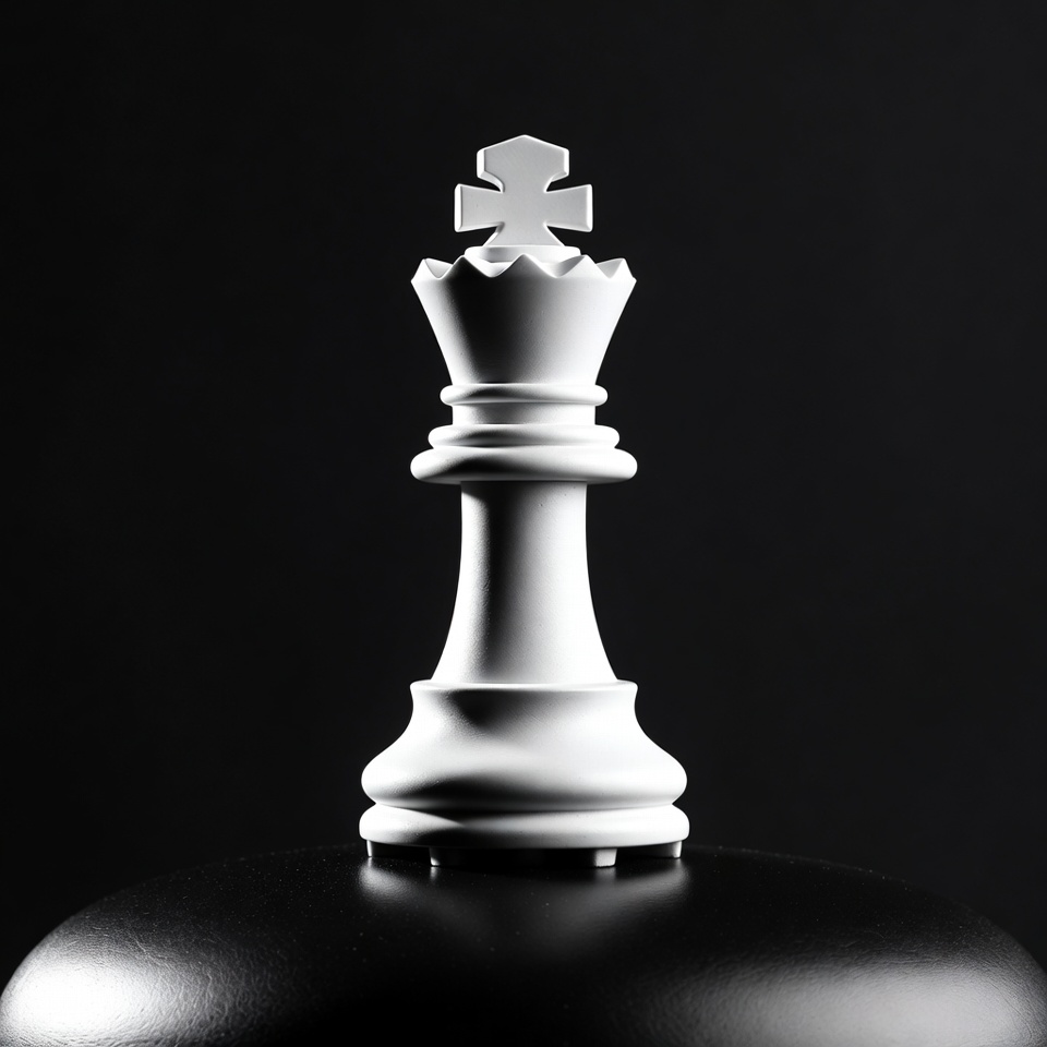 3D render, bishop, black background, board game, checkmate, chess game, chess piece, chessboard, game piece, glossy surface, isolated, king piece, knight, pawn, queen, rook, sculpture, strategy game, white king, chess king