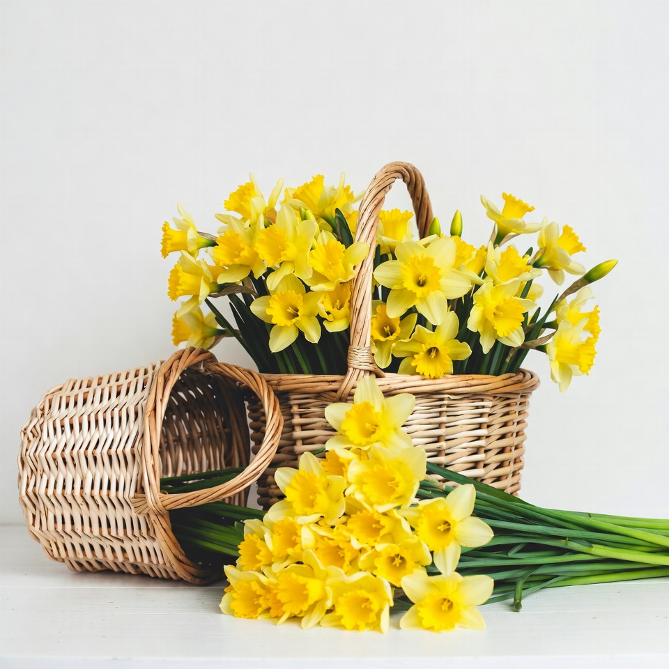 Yellow Daffodils in Wicker Baskets
