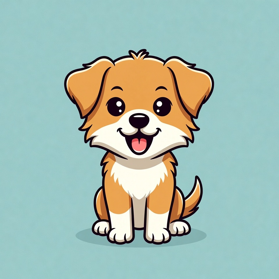 adorable dog, big eyes, cartoon dog, clipart, dog cartoon, fluffy fur, golden retriever, happy smile, illustration, isolated background, kawaii, light blue background, orange fur, pet illustration, puppy illustration, sitting puppy, smiling dog, vector art, white paws, cute puppy