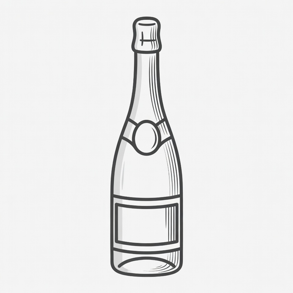 alcohol, beverage, bottle, celebration, champagne, clipart, cork, drawing, elegant, festive, illustration, isolated background, label, line art, luxury, outline, sparkling wine, vector, wine bottle, champagne bottle