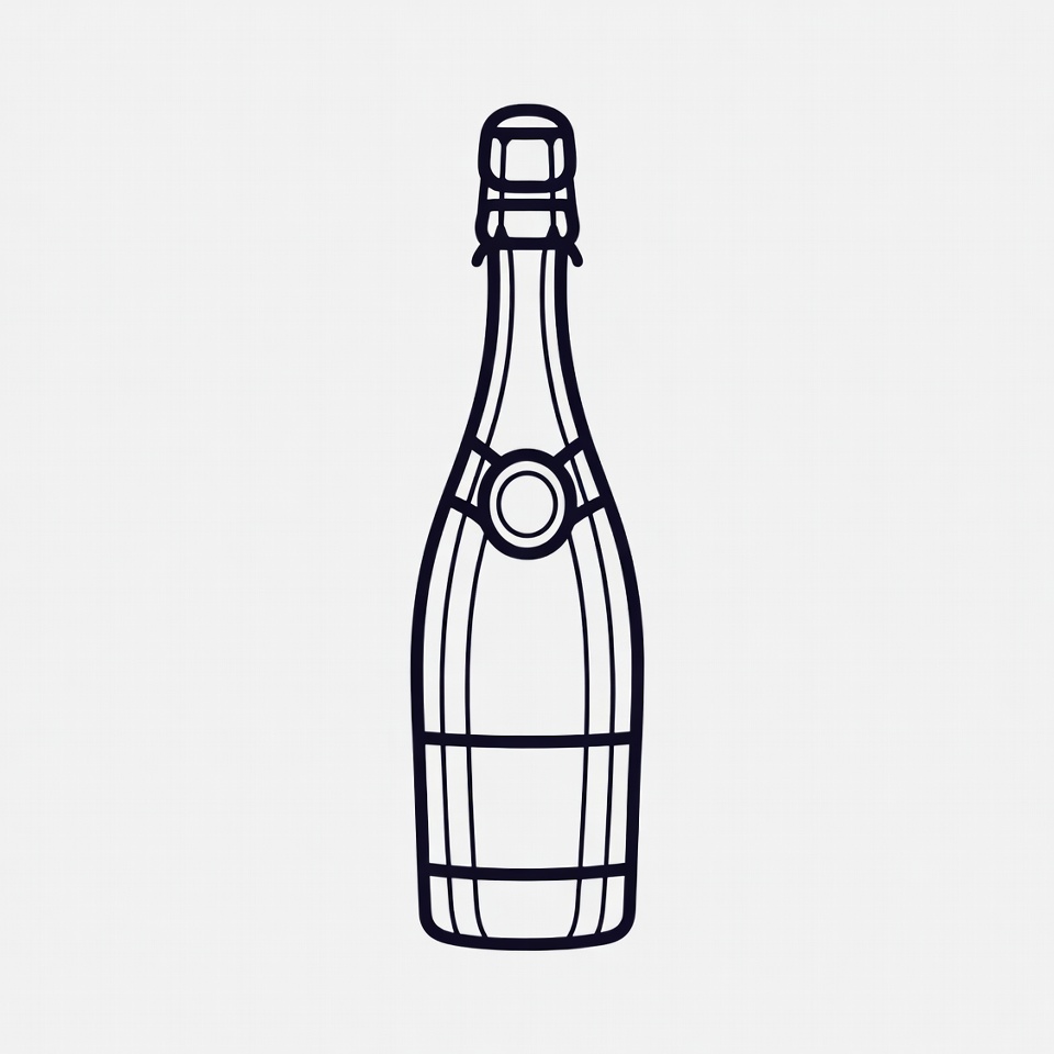 black outline, bottle, champagne, clipart, cork, drawing, elegant, foil wrap, graphic, illustration, isolated background, label, line art, vector, champagne bottle