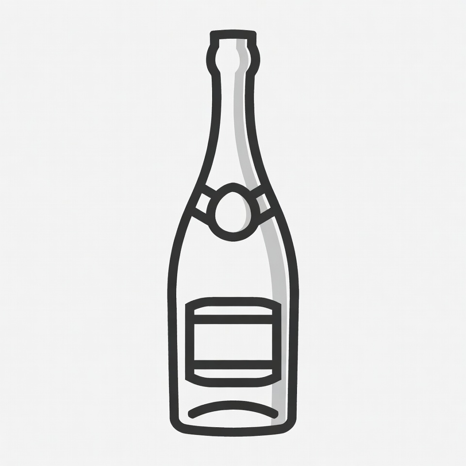 alcohol, beverage, blank label, bottle, celebration, champagne, clipart, elegant, foil neck, graphic, illustration, isolated background, line art, outline, sparkling wine, vector, champagne bottle