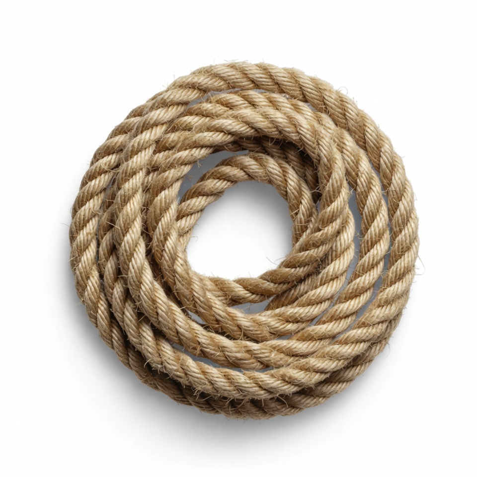brown rope, circular rope, coiled rope, isolated background, nautical rope, rope coil, rope loop, thick rope, top view, twisted rope, white background, rope