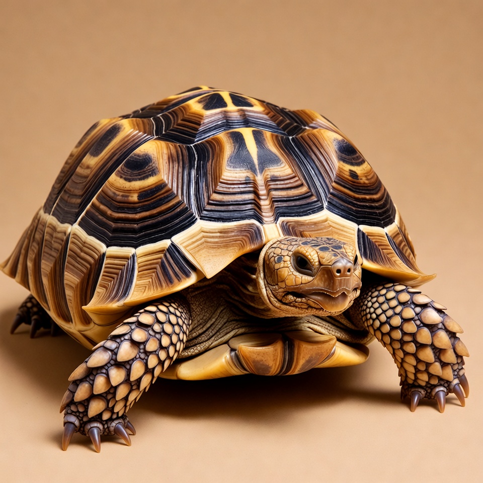 animal, beige background, black patterns, detailed shell, exotic pet, geometric shell, head, isolated background, legs, macro photo, radiated tortoise, reptile, shell, textured skin, turtle, wildlife, yellow shell, tortoise