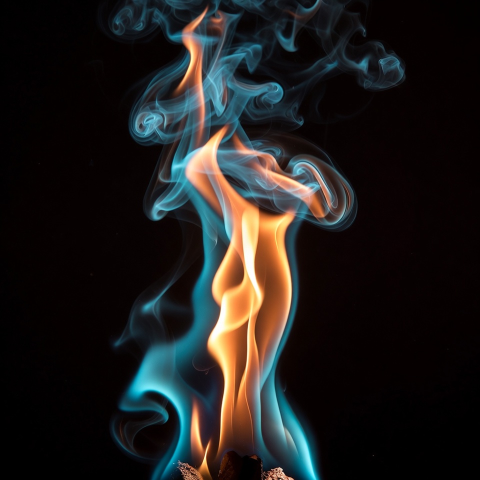 abstract, black background, blaze, blue flames, burning, color, dynamic, fiery, flames, glow, heat, inferno, intense, isolated, orange flames, smoke, swirls, vibrant, wisps, fire