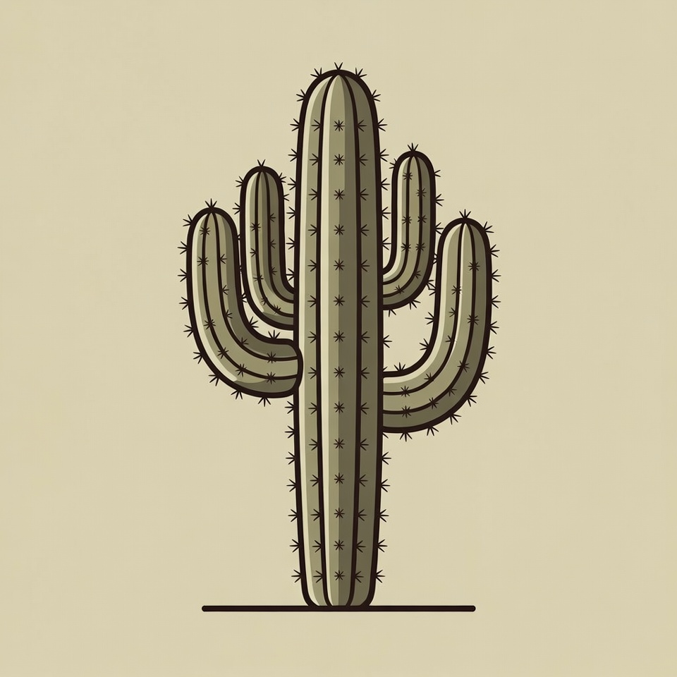 arms, beige background, clipart, desert plant, drawing, flat design, graphic, illustration, isolated background, line art, minimalist, nature, plant, prickly pear, saguaro, spines, succulent, vector, cactus