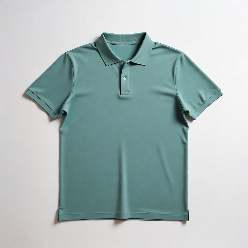 apparel, button placket, casual shirt, clothing, collared shirt, fabric, fashion, flat lay, garment, isolated, mens shirt, short sleeve, sportswear, teal shirt, uniform, white background, polo shirt