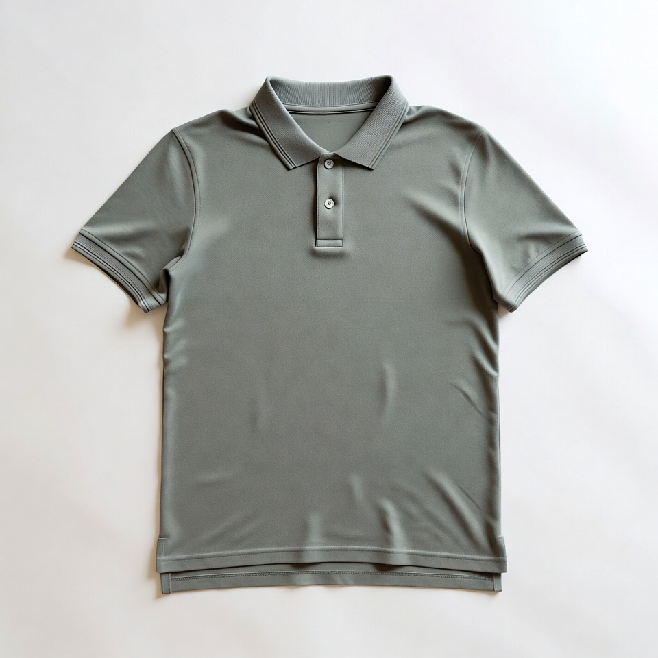 apparel, button placket, casual wear, clothing, collared shirt, cotton shirt, fashion, flat lay, gray shirt, grey polo, isolated background, mens shirt, short sleeve, white background, polo shirt