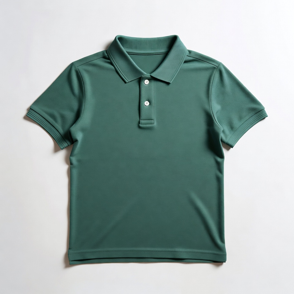 apparel, boys shirt, button placket, casual shirt, clothing, collared shirt, cotton polo, fashion, green clothing, green shirt, isolated background, mens shirt, short sleeve, uniform shirt, white background, polo shirt