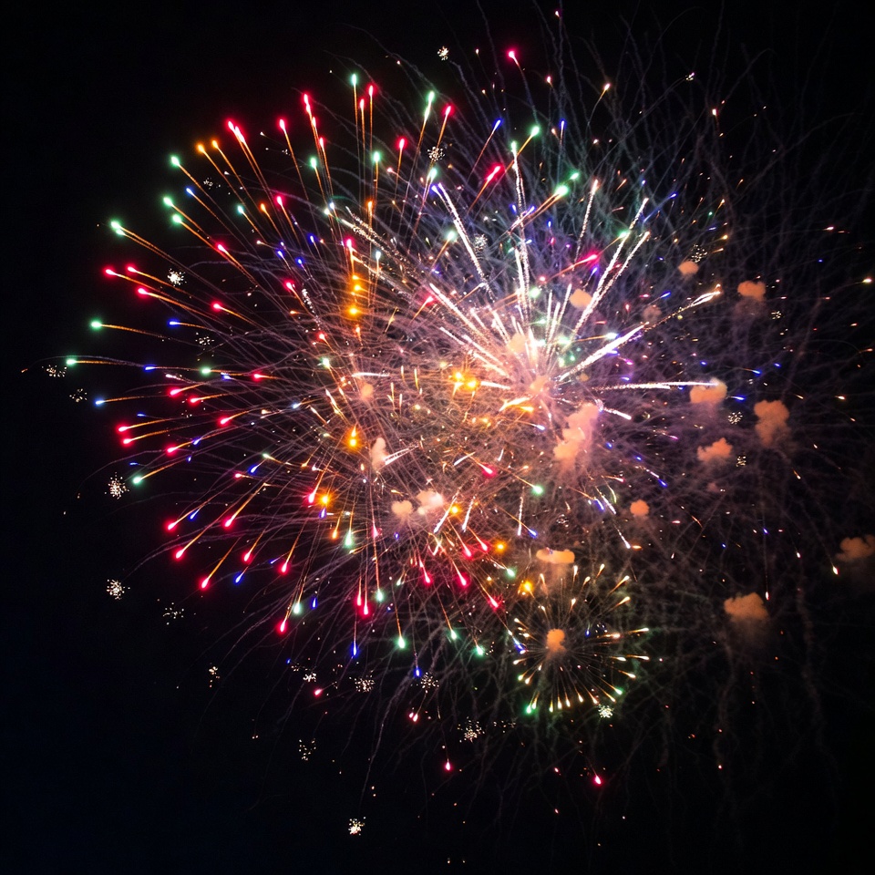 aerial display, blue fireworks, bursts, celebration, colorful fireworks, dark background, exploding fireworks, festival, fourth of july, green fireworks, holiday fireworks, light trails, new year, night sky, pyrotechnics, red fireworks, sparks, vibrant colors, yellow fireworks, fireworks