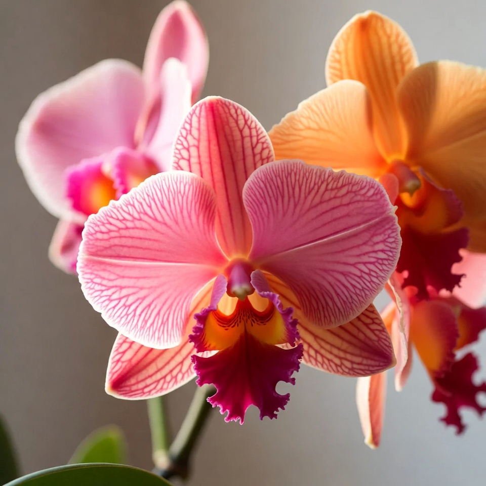Pink and Orange Orchids Blooming
