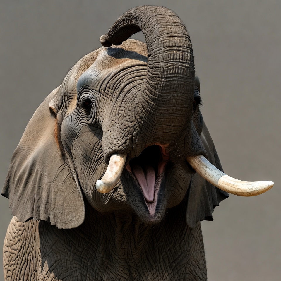 African elephant, animal portrait, gray background, ivory tusks, large ears, mammal, open mouth, roaring elephant, safari animal, trunk curled, tusks, wild elephant, wildlife, zoo elephant, elephant