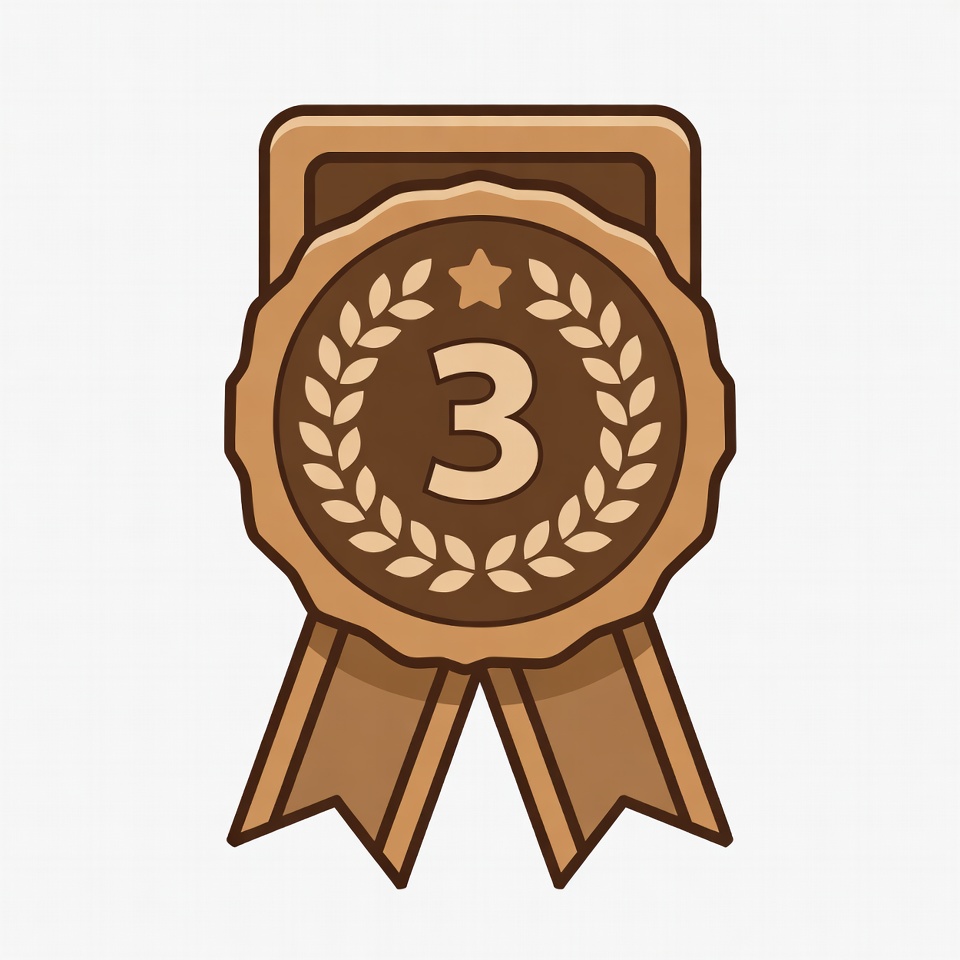 achievement badge, award ribbon, clipart, competition prize, gold star, illustration, isolated background, laurel wreath, number 3, podium award, third place, trophy symbol, vector graphic, bronze medal