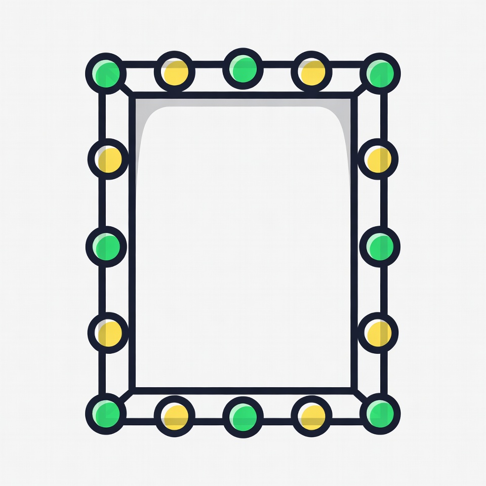 beauty mirror, bulb lights, dressing table mirror, green bulbs, illustration, isolated background, light bulbs, makeup mirror, mirror frame, rectangular frame, simple design, vanity mirror, vector graphic, yellow bulbs, clipart