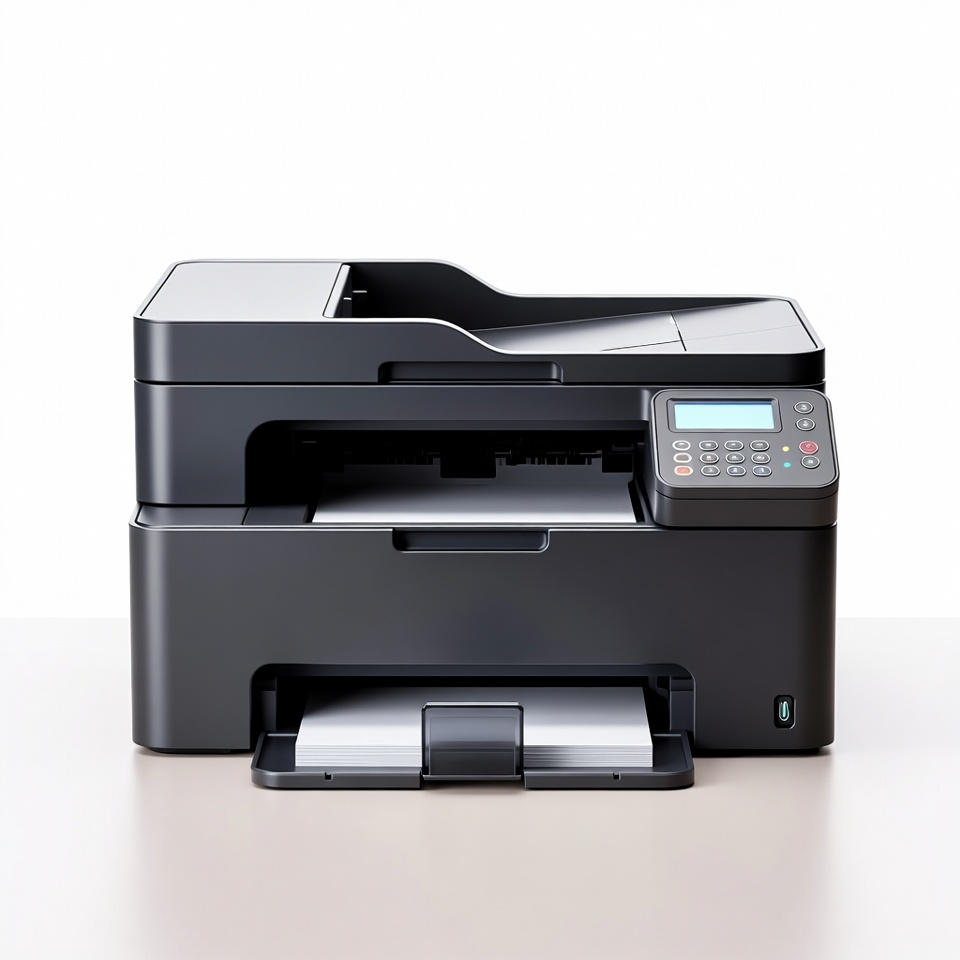 all-in-one printer, black printer, blank paper, control panel, copy machine, digital display, document printer, fax machine, inkjet printer, isolated background, laser printer, modern printer, multifunction printer, office equipment, office printer, paper tray, photocopier, printing device, scanner, printer