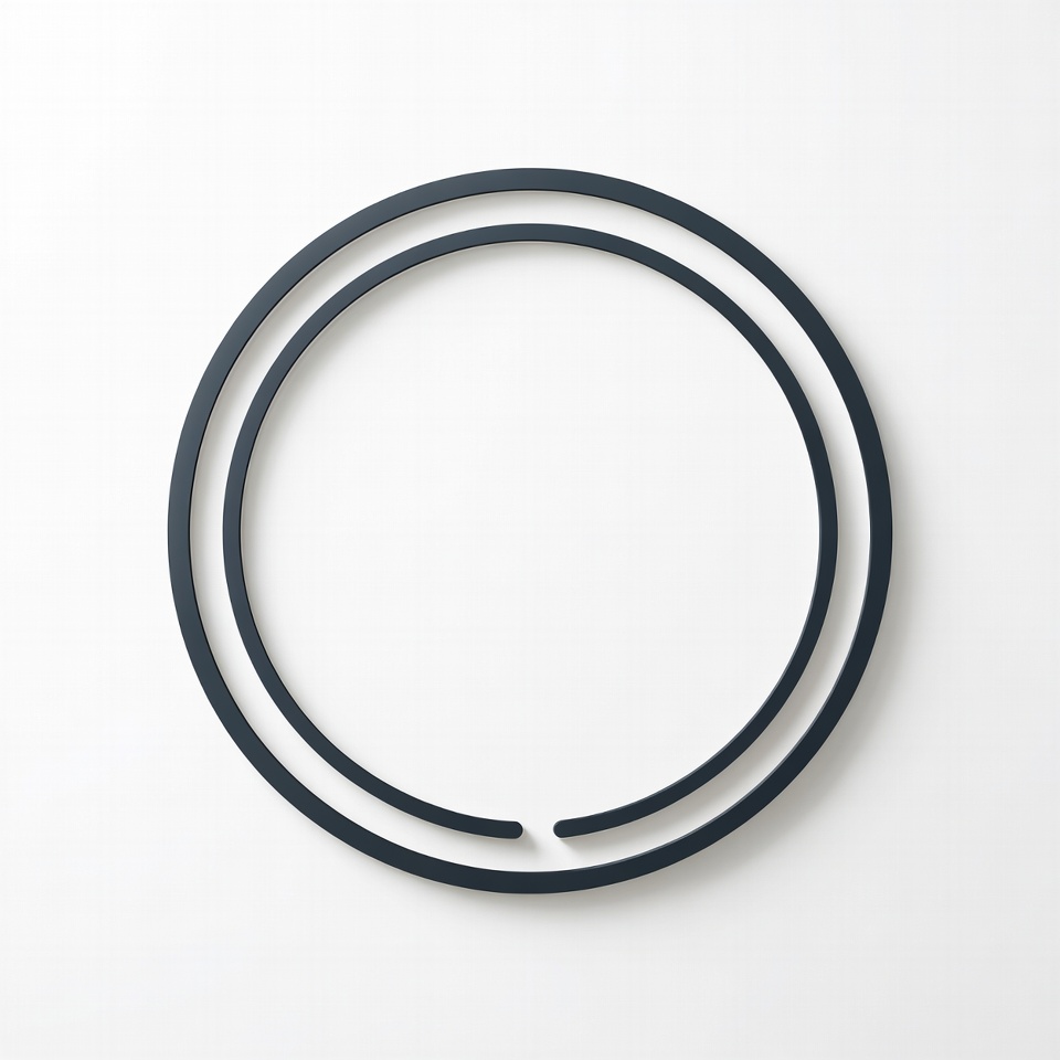 Two concentric black outline circles are centered on a plain white background. The inner circle is smaller and perfectly aligned within the larger outer circle. The design is simple and minimalist with clean, sharp lines.