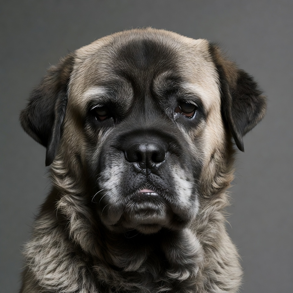 Mastiff, animal, black nose, brindle fur, canine, closeup, dog, droopy eyes, expressive eyes, fluffy fur, gray background, large dog, pet, portrait, puppy face, sad eyes, whiskers, wrinkly face, Mastiff dog