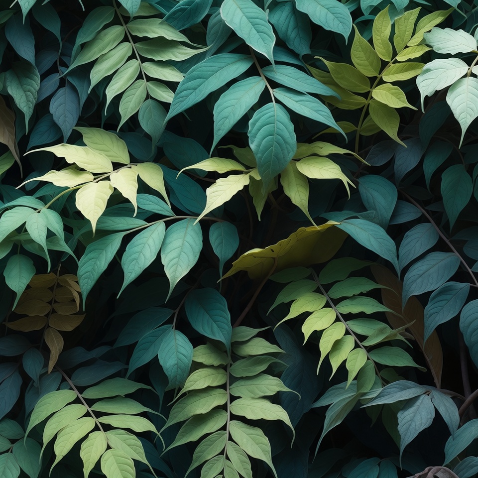 A dense cluster of vibrant green leaves in various shades forms a textured natural background. The leaves feature pointed tips and serrated edges, overlapping in layers. Subtle variations from emerald to lime green create depth and visual interest.